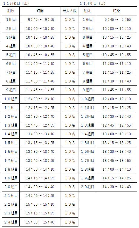 10分間の交代制とさせていただきます。エアー遊具については下記のタイムテーブルで実施させていただきます。