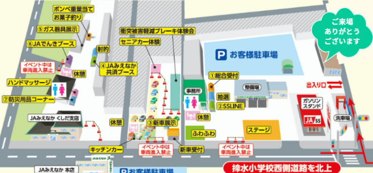 さらに、タイヤ、ガス器具、防災用品の購入者を対象に特選松阪牛があたるプレミアムガチャ!!ガラポン抽選会やスタンプラリー、ガスボンベ重量あてクイズ等ステージイベント(消防車展示・よさこい・キッズダンス・太鼓演舞)、キッズコーナー(お菓子釣り、射的、クイズラリー、ふわふわ)など、楽しい催しが盛りだくさん!!