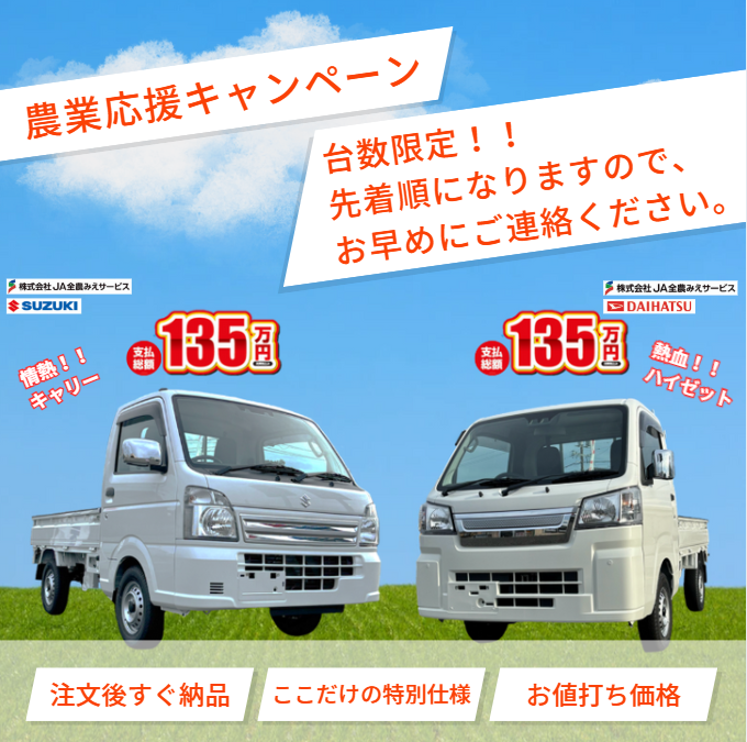 未使用車の軽トラックについては、JA全農みえサービスの特別使用車となっています。