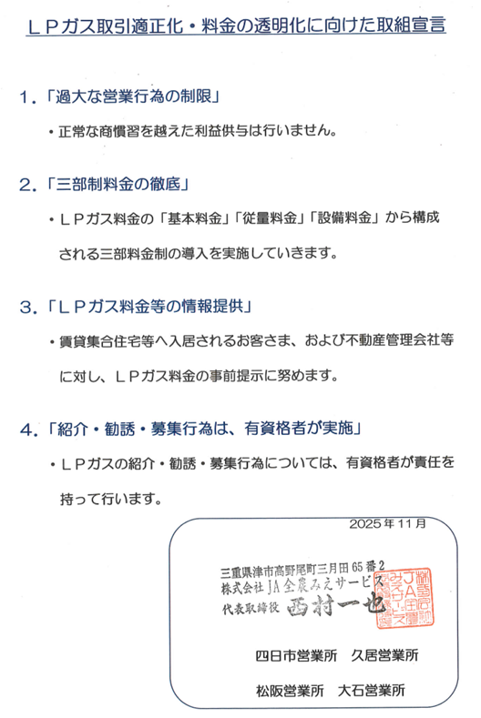 LPガス取引適正化・料金の透明化に向けた取組宣言